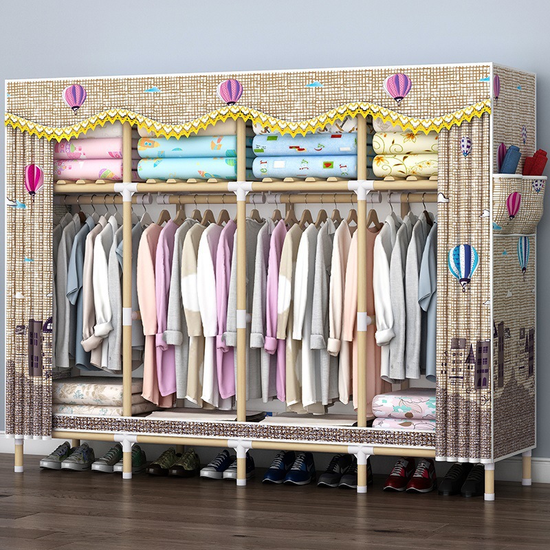 W * 棚たんす防塵カーテンオープンフード間寝室簡易アングルハンガー家庭用床置き多層置物