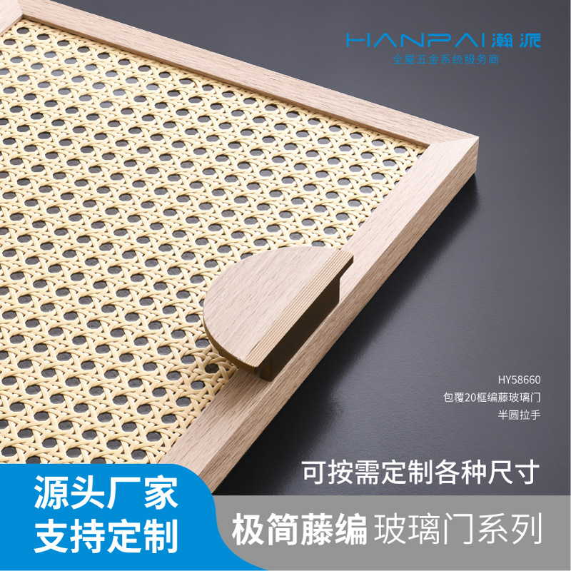 籐編みキャビネットドアカスタムアルミフレームシングルガラス挟み籐編みドア古風カバー20フレーム編み籐ガラスドアアートガラス