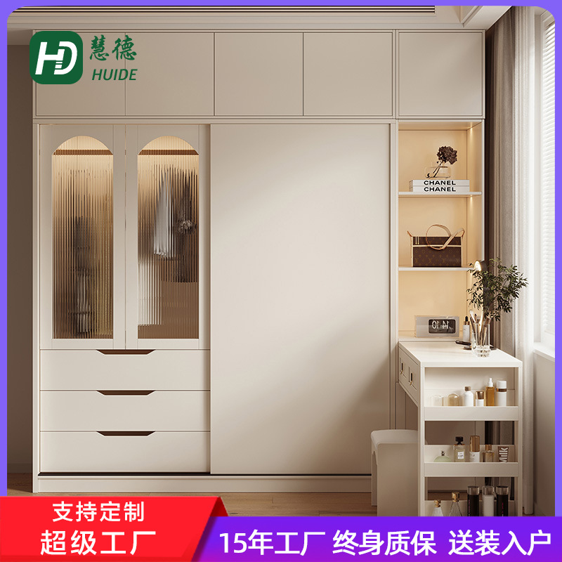 クリーム風実木大たんす家庭用寝室現代シンプルネット赤たんす収納棚机一体