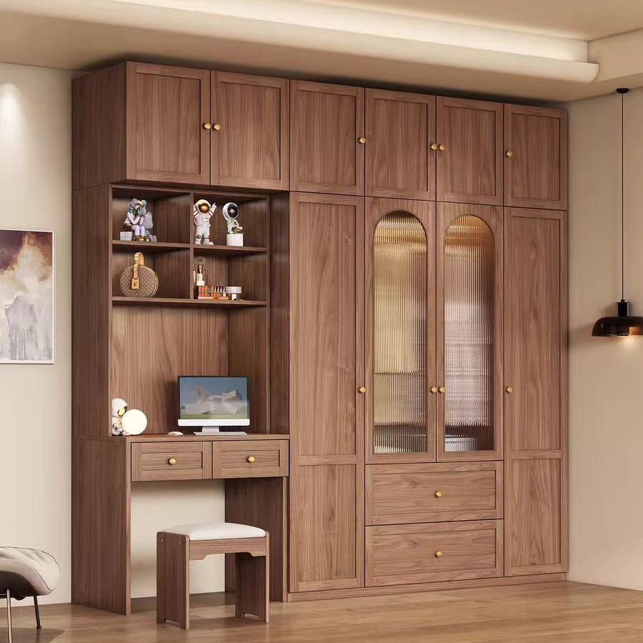 アメリカのレトロな木造の箪笥の寝室の家庭用胡桃の花の心木の2024の新型の3456ドアの大きいタンスはトップのタンスを持っています。