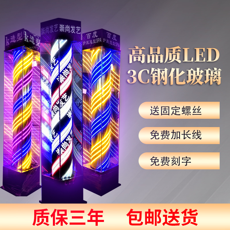 包郵便美容美髪着地LED回転灯床屋屋外防水フルカラー回転灯髪廊ガラス大ランプハウス