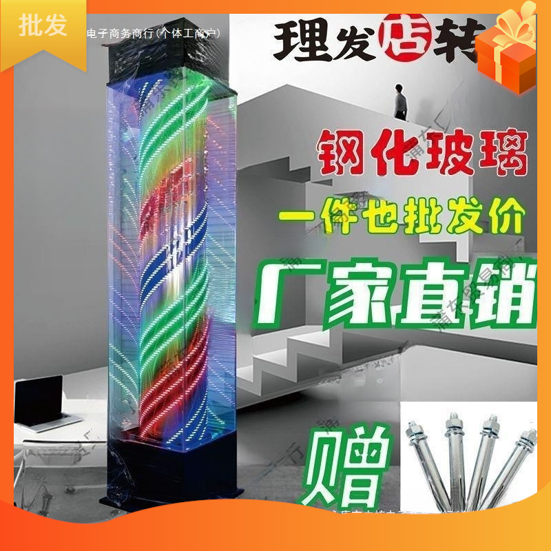 理髪店回転ライトフロア屋外防水ヘアサロンサインライトカラフルなガラスヘアサロンライトボックス承認可能