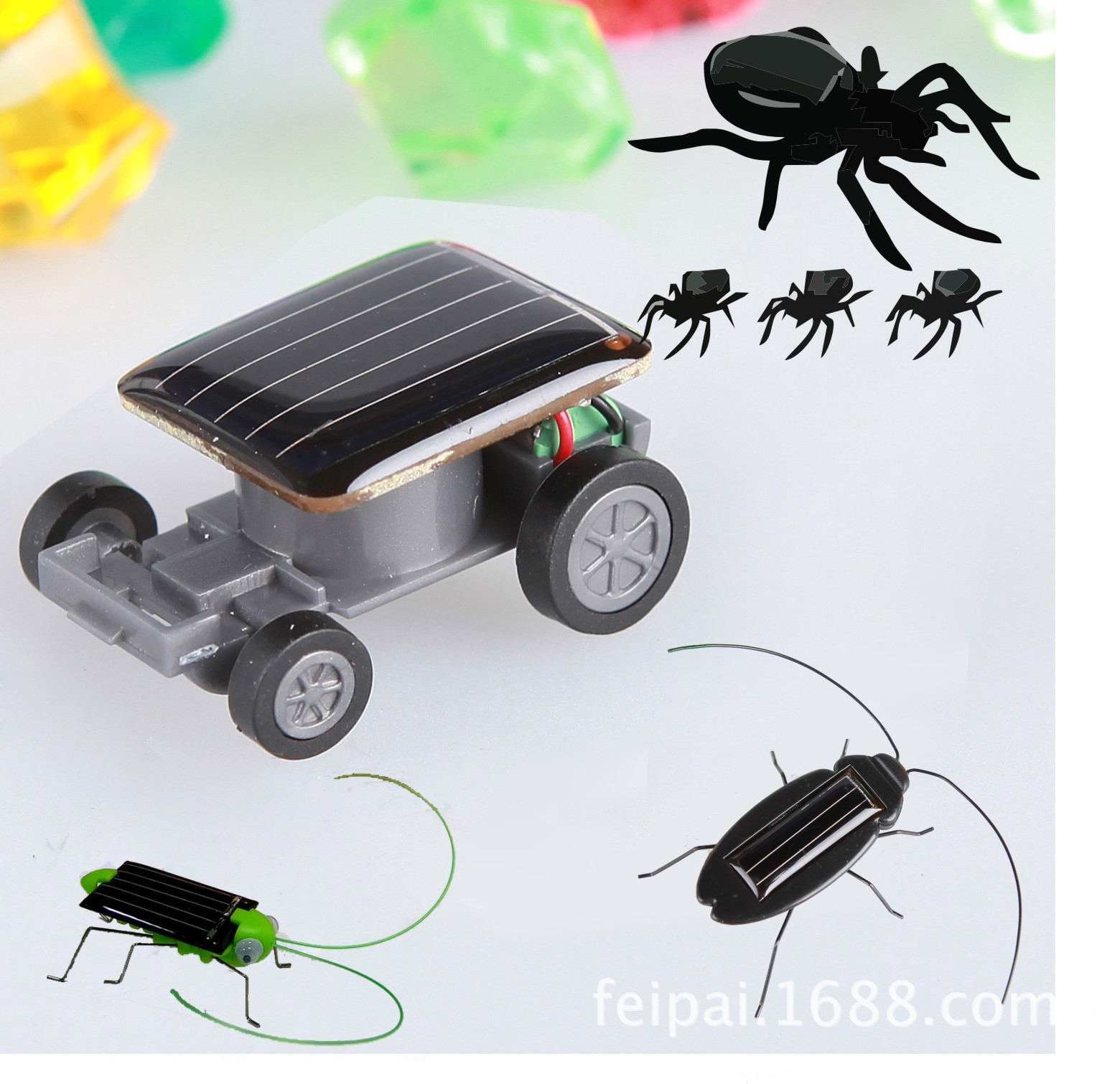 ソーラーおもちゃの車、イモムシ、ゴキブリ、クモ、多脚昆虫の模倣、月面探査車、クリエイティブなスポーツカー、輸出用知育玩具