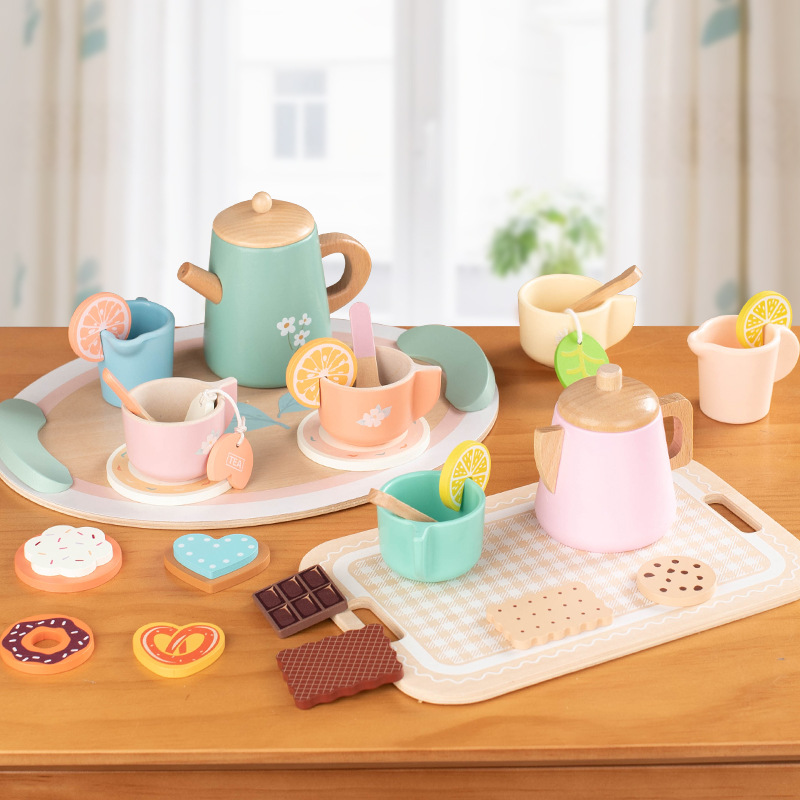 木製アフタヌーンティーおもちゃセット女の子ままごとシミュレーションティーポットティーセットキッチンおもちゃ子供の誕生日プレゼント