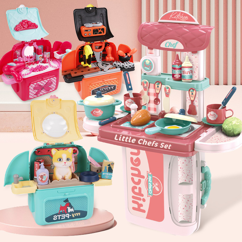 子供のままごとは台所の女の子のおもちゃのセットの大きい贈り物の箱の育成訓練機関の贈り物の露店のおもちゃの卸売りをシミュレーションします。