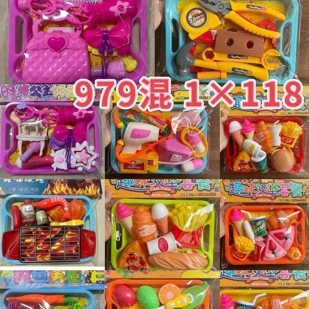卸売り子供のままごとのおもちゃのミニバーガーポテトの洋食の台所のセットは食品のおもちゃの模型をシミュレーションします。