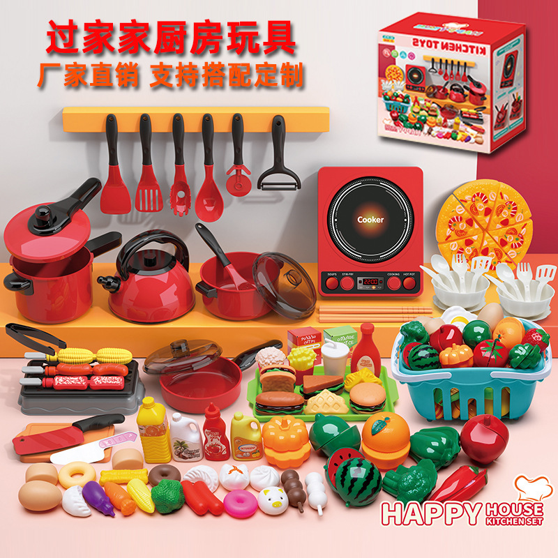 子供のままごとの台所のおもちゃのセットは電磁ストーブの炒め物の食器の料理台をシミュレーションします。