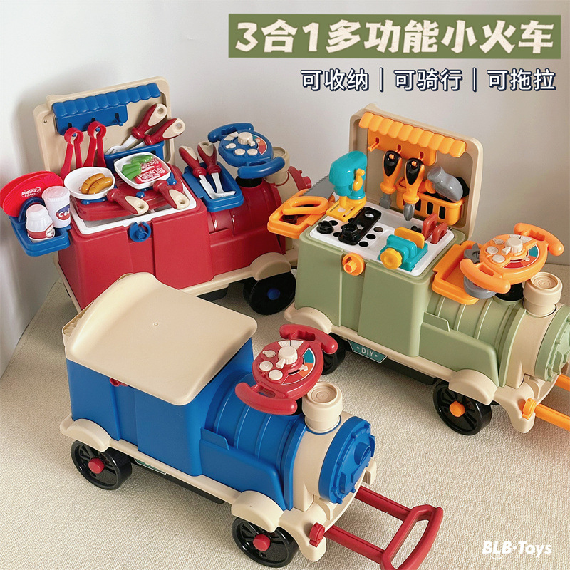 クロスボーダーのままごとの小さい列車は人の多機能に乗ることができて音楽の子供の台所のおもちゃの3-6歳のプレゼントのおもちゃを持ちます。