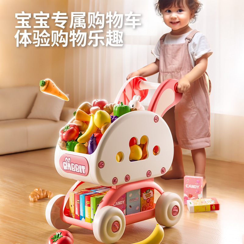 子供のショッピングカートのおもちゃの手押し車のままごとの大きい二重の収納は赤ちゃんの手押し車のショッピングカートを調節することができます。