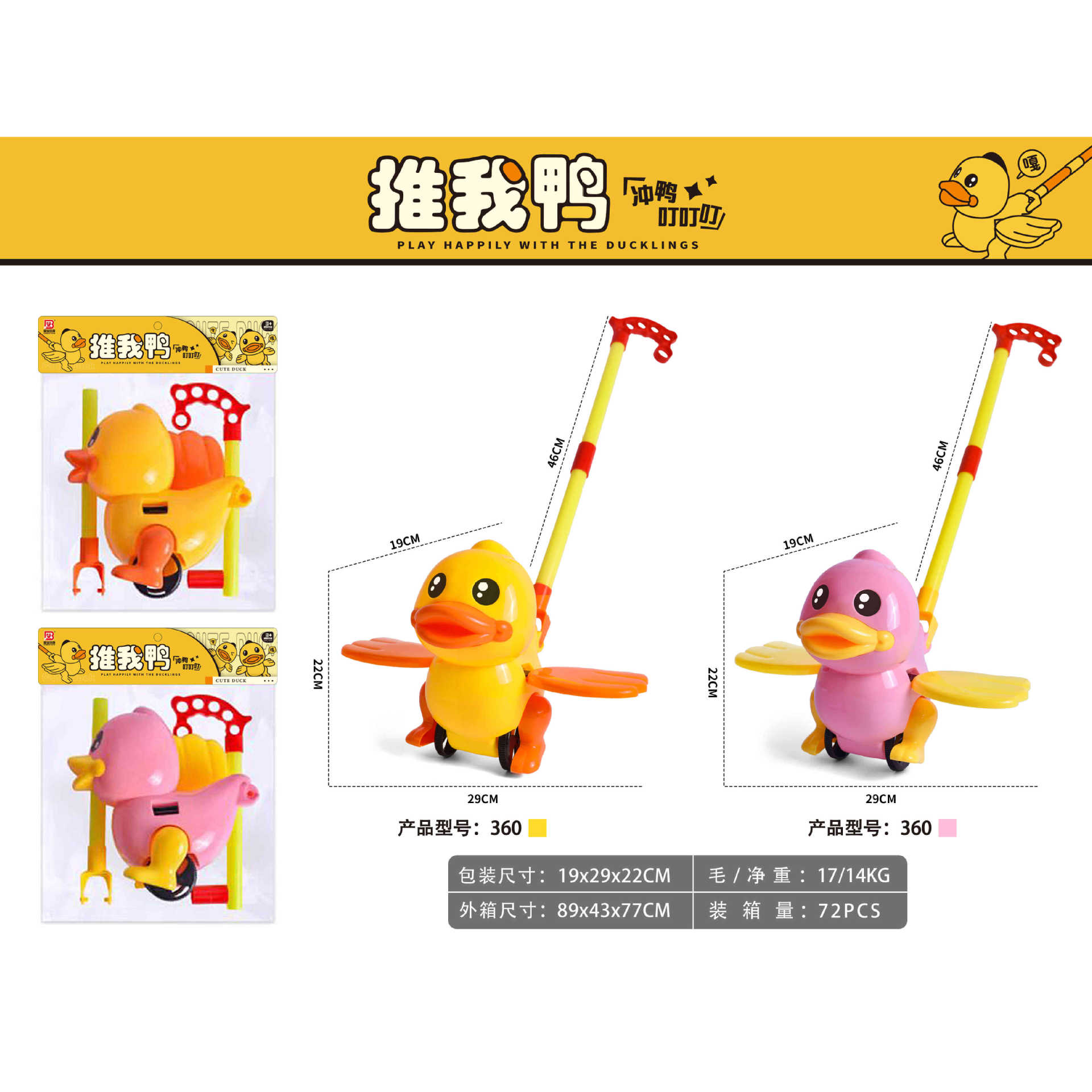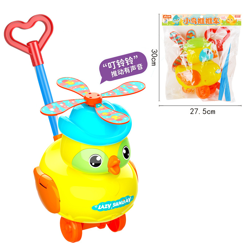 手押し車の赤ちゃんは手を習って私のアヒルの子供を押して楽を押して鈴を持って翼のおもちゃの黄色のアヒルの卸売りを扇動します。
