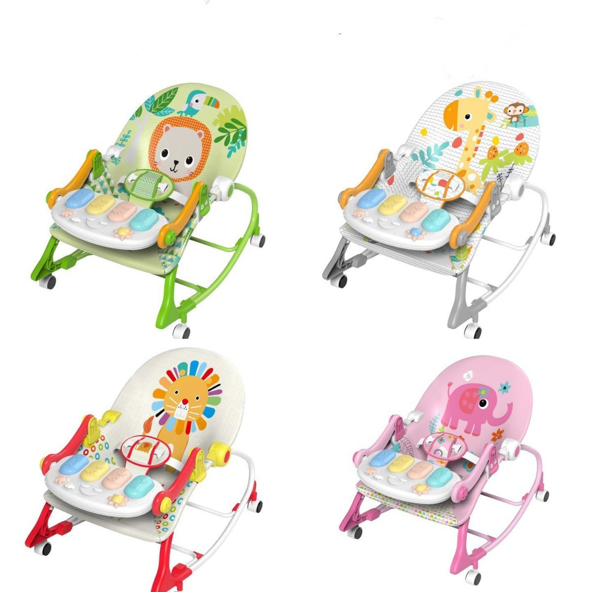 ベビーユニバーサルロッキングチェアなだめるチェア多機能音楽あやし子供用食事椅子牽引ひも付きハンドル