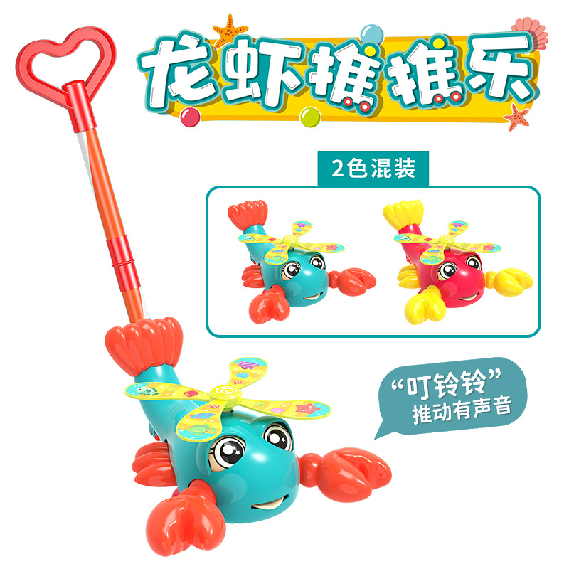 赤ちゃん学歩手押し車のおもちゃのシングルレバーの子供の漫画のロブスターは男の子の女の子の露店の商品の卸売りを押します。