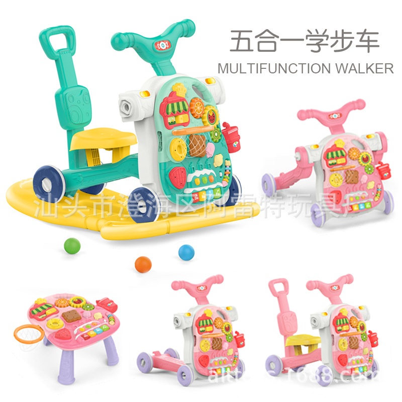 外国貿易ベビーウォーカー玩具新生児赤ちゃん多機能5合1手押し車滑車知育学習テーブル