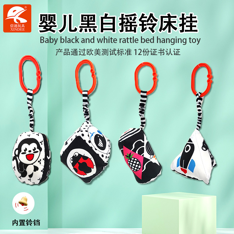 クロスボーダー白黒ラトルベビーなだめるグリップ0-3歳教育用ベビーカーベッドペンダント新生児おもちゃ卸売