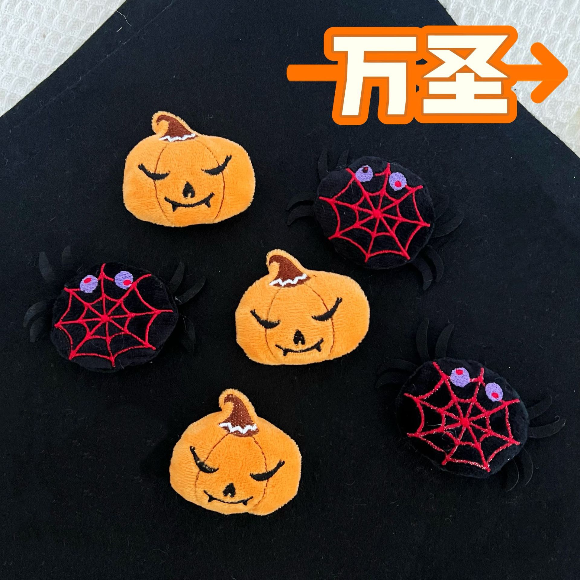 ハロウィンのおかしな髪飾り漫画の小さいクモのカボチャのぬいぐるみの部品のパーティーはカードの服を飾ってアクセサリーを飾ります。