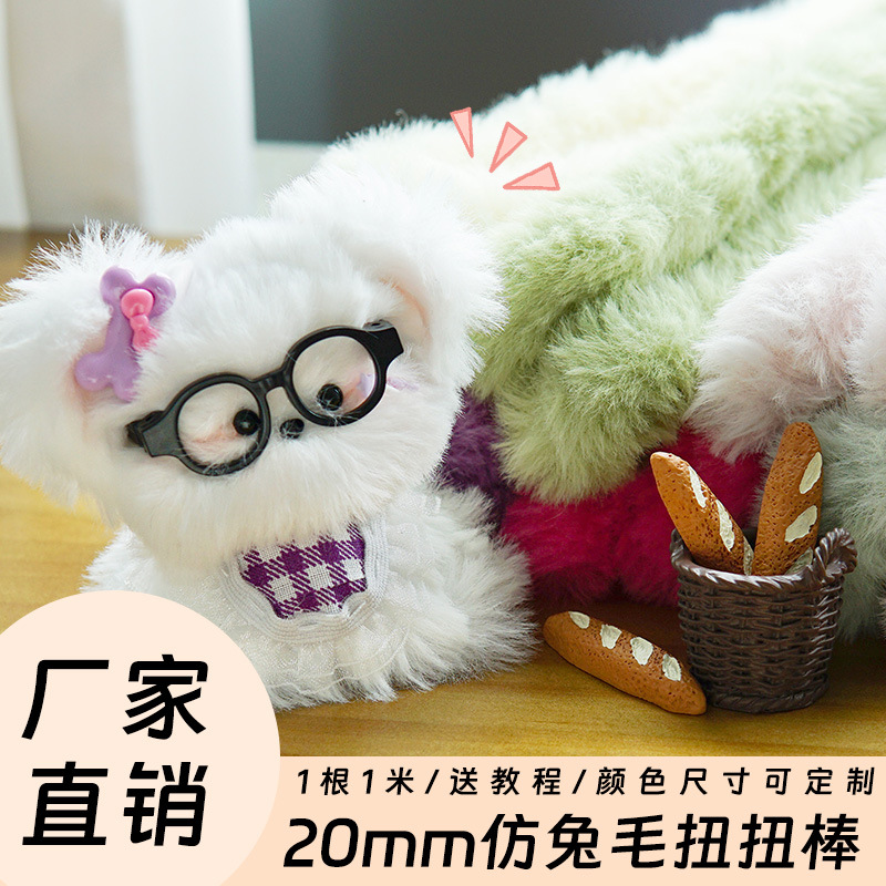 20mmコーラルベルベットツイストスティック、極細毛糸、子犬DIY素材パック、工場直送、手作り知育玩具