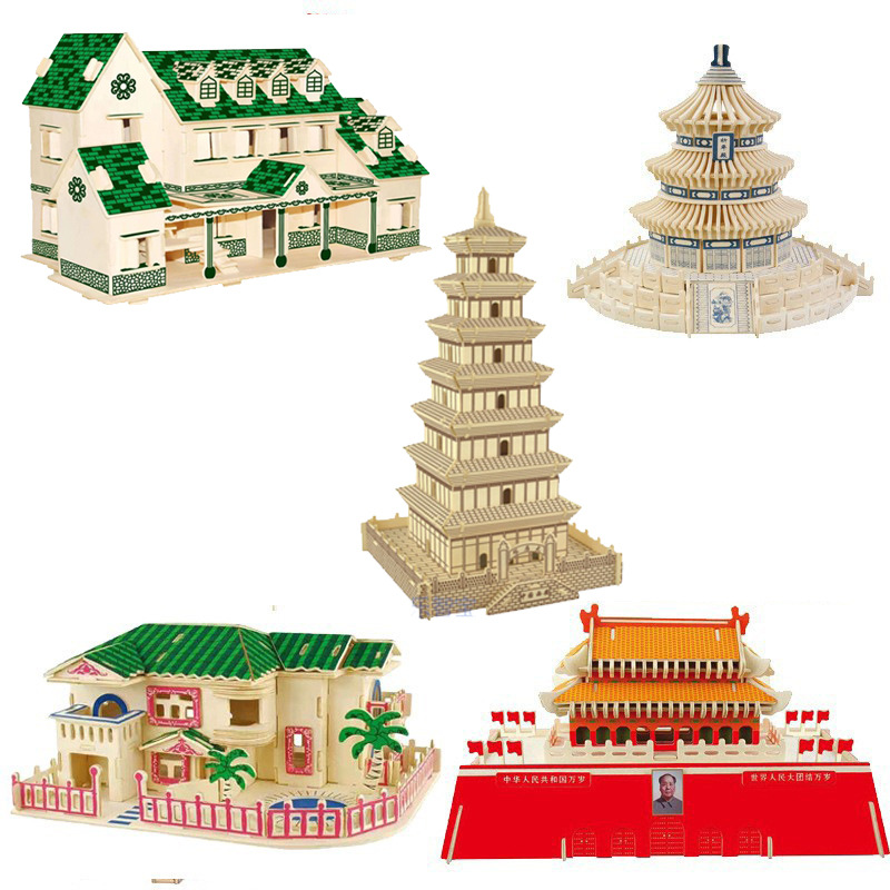 益智科の教地の露店は江湖の大きい特恵を走っておもちゃの天安門のdiyの木製の3d立体のジグソーパズルをつづり合わせます。