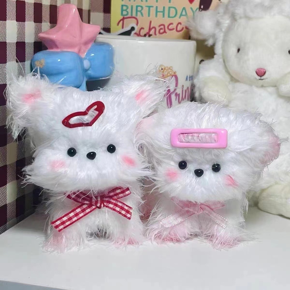 ツイストスティック子犬キーホルダーアクセサリーINS風ぬいぐるみ犬熊ストラップ手作りdiy小紅本