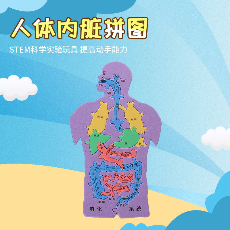 人体玩具消化器系内臓パズルEVAモデル、手と頭を使って創造的に遊べる、子供向け知育科学玩具