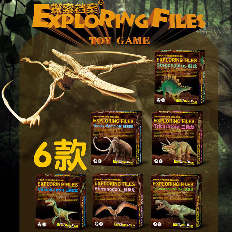 夜市の露店の子供の手作りのdiy考古学のおもちゃのブラインドの箱は宝を探して恐竜を掘り起こして考古学のおもちゃを詰めます。
