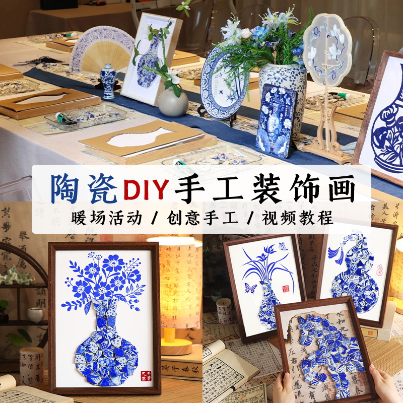 景徳鎮青花磁器コラージュ画手作りDIY素材パック モザイク陶磁器装飾画 重陽節の雰囲気作り