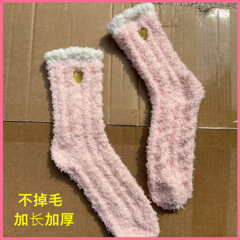 24 シーズン新ゴールデン愛刺繍靴下コーラルベルベットの女性の靴下厚い睡眠靴下カジュアルホームフロアソックス女性