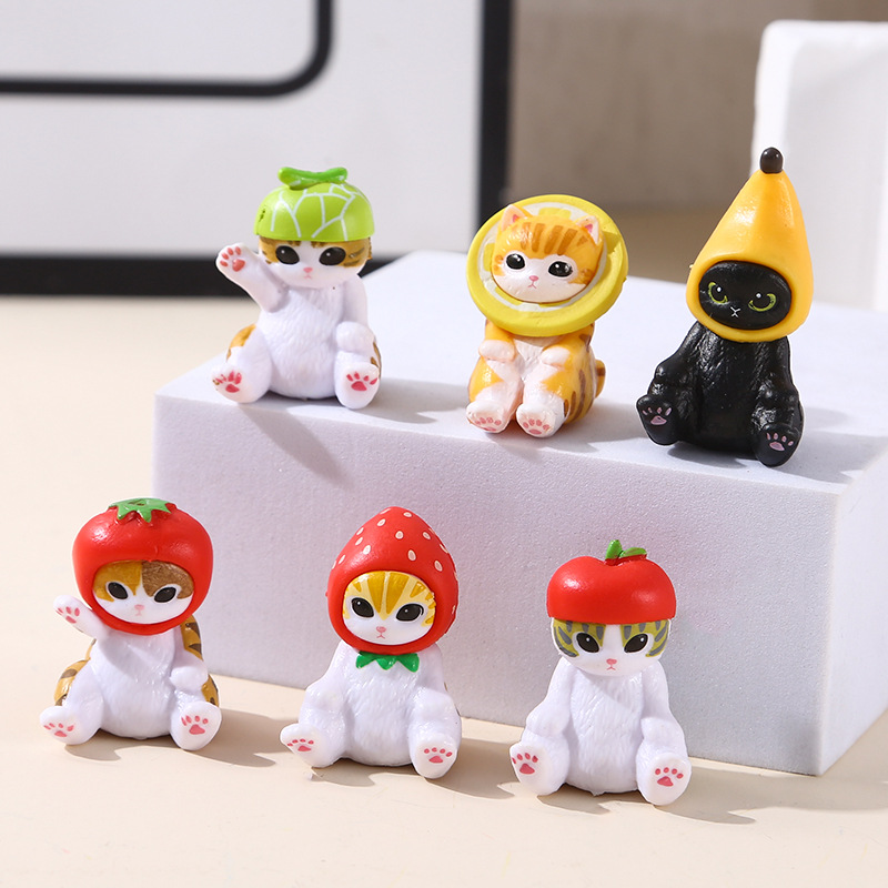 6 座っている猫 Fusandi サメ猫女装かわいいフルーツイチゴバナナ子猫人形デスクトップマイクロ装飾品