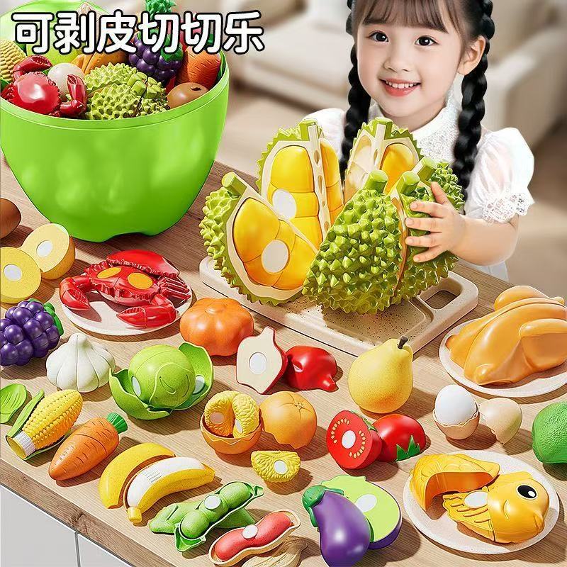 高級で皮をむけることができる子供用フルーツカットおもちゃ、ドリアンや野菜を切れるごっこ遊び、知育キッチンおもちゃ