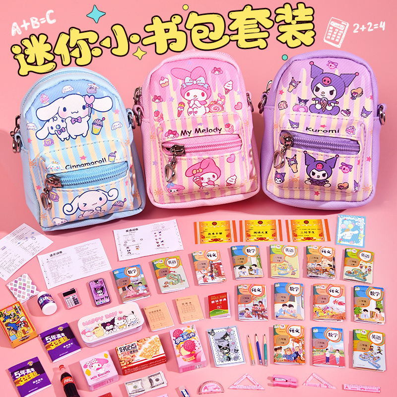2025 新しい子供のミニスクールバッグ女の子のクロスボディバッグシミュレーションフルセット文具本おもちゃミニチュア
