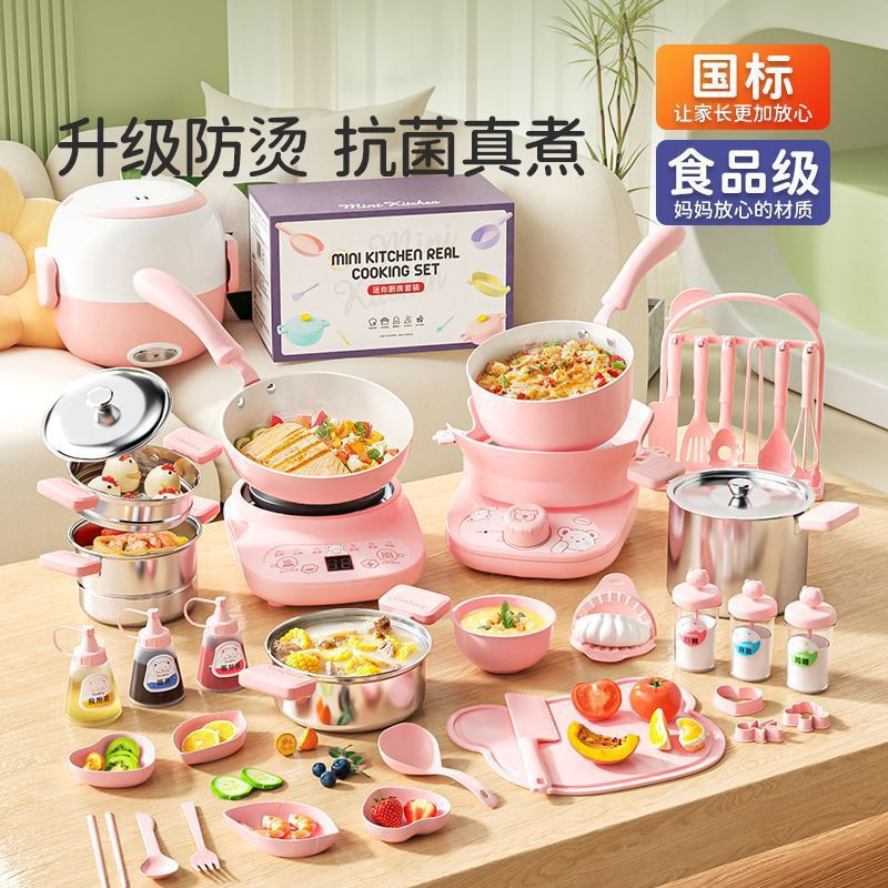インターネット有名人ミニキッチンリアルクッキングフルセット子供用ままごとリアルバージョンクッキングキッチン用品セット男の子と女の子のおもちゃ