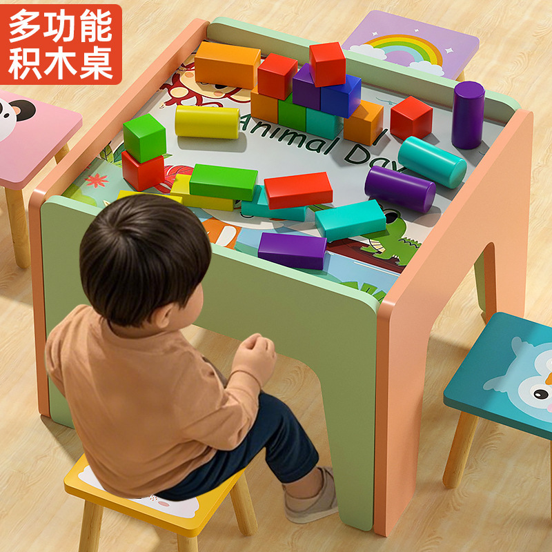 子供の木製遊び場ビルディングブロックテーブル多機能学習テーブル大粒子おもちゃテーブル