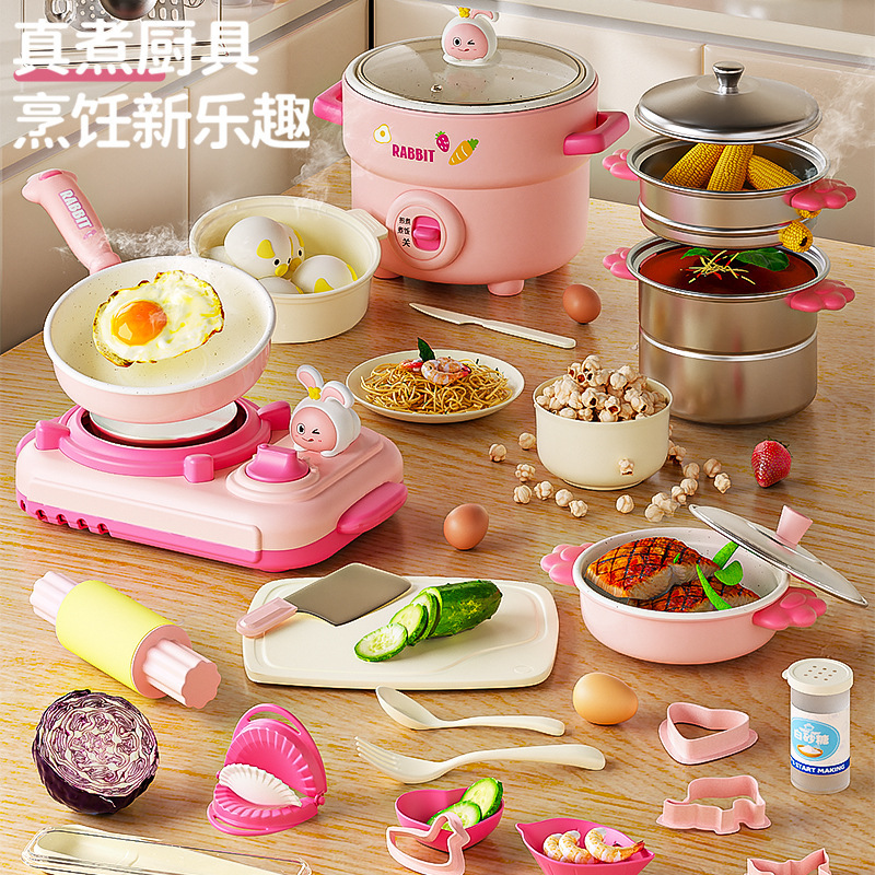 子供のおもちゃインターネット有名人ミニキッチンリアルクッキングフルセットシミュレーションギフト女の子のおもちゃ教育クッキングリアルバージョン