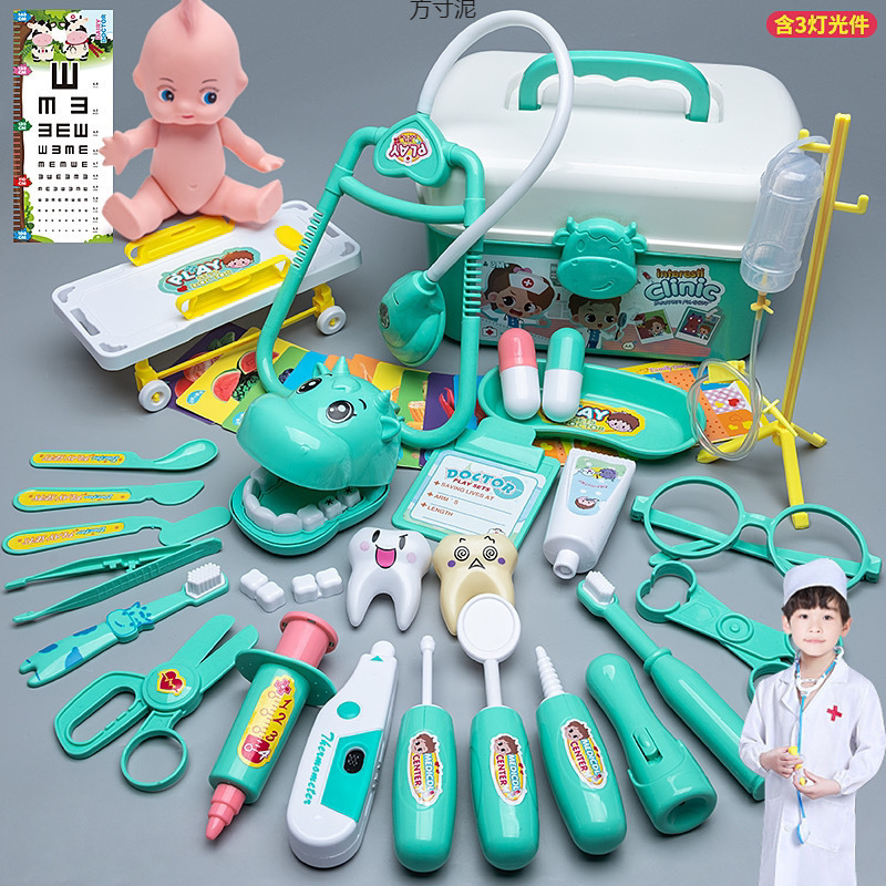 子供の女の子のおもちゃセットの医者の箱の聴診器は注射して看護師のままごとの男の子の赤ちゃんを演じます。