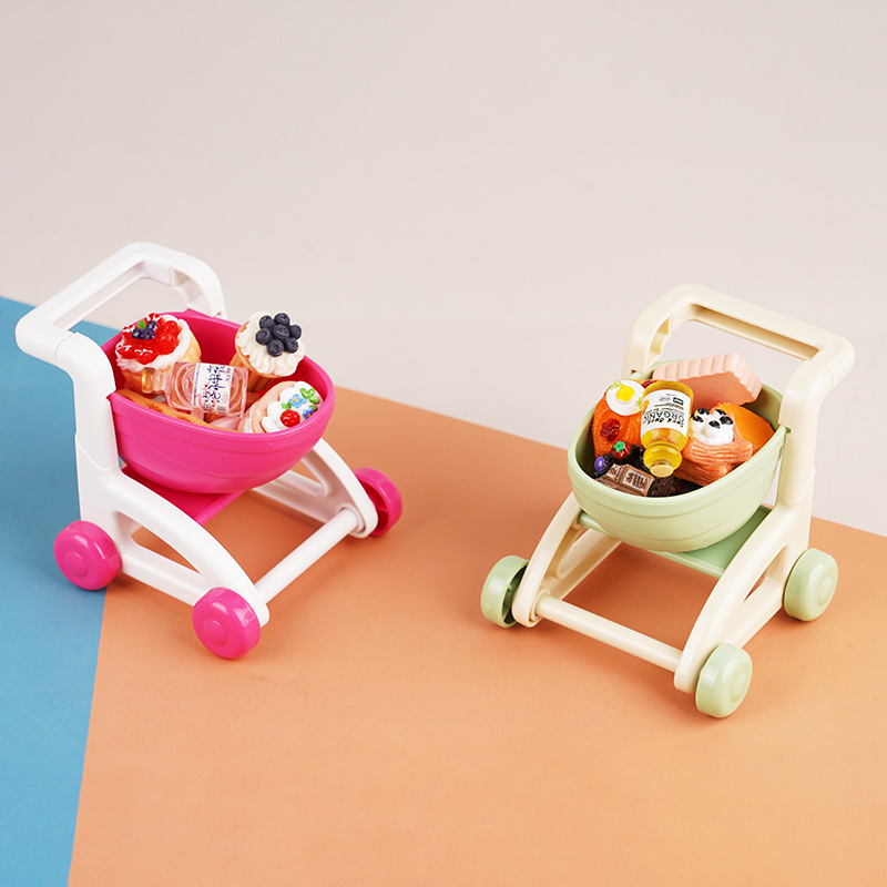 子供のミニシミュレーションのショッピングカートの手押し車のままごとのおもちゃの食品の益智の模型のアイデアは車の小さいサイズを収納します。