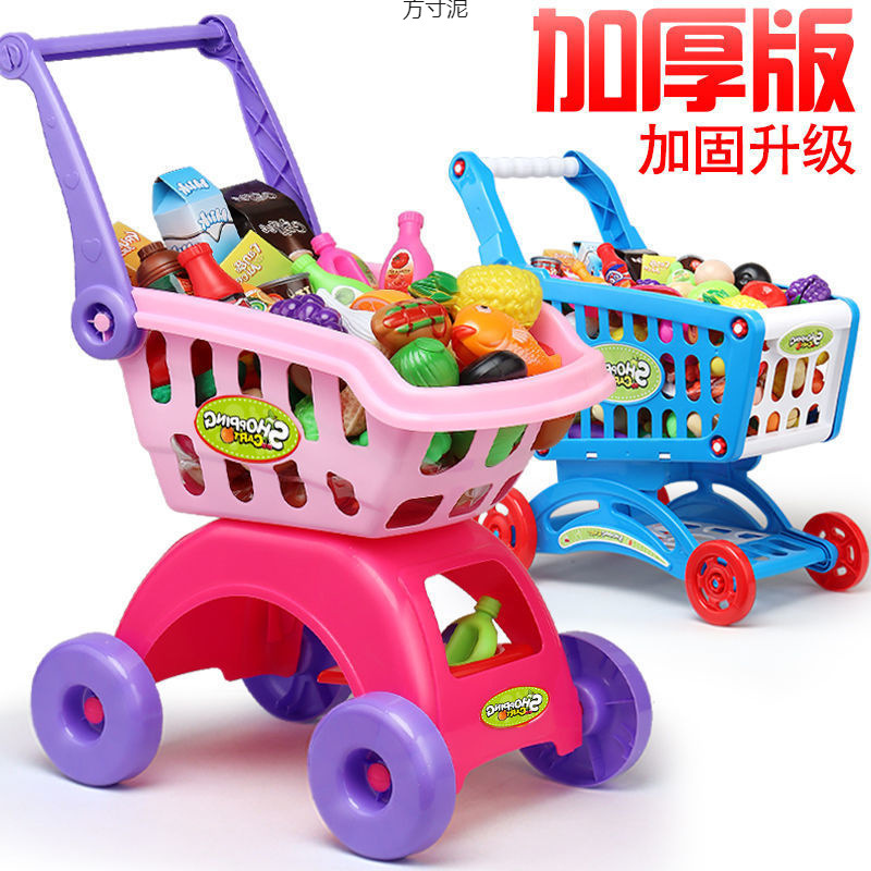 子供のショッピングカートのままごとのおもちゃは赤ちゃんの手押し車をシミュレーションして果物を切ることができます。