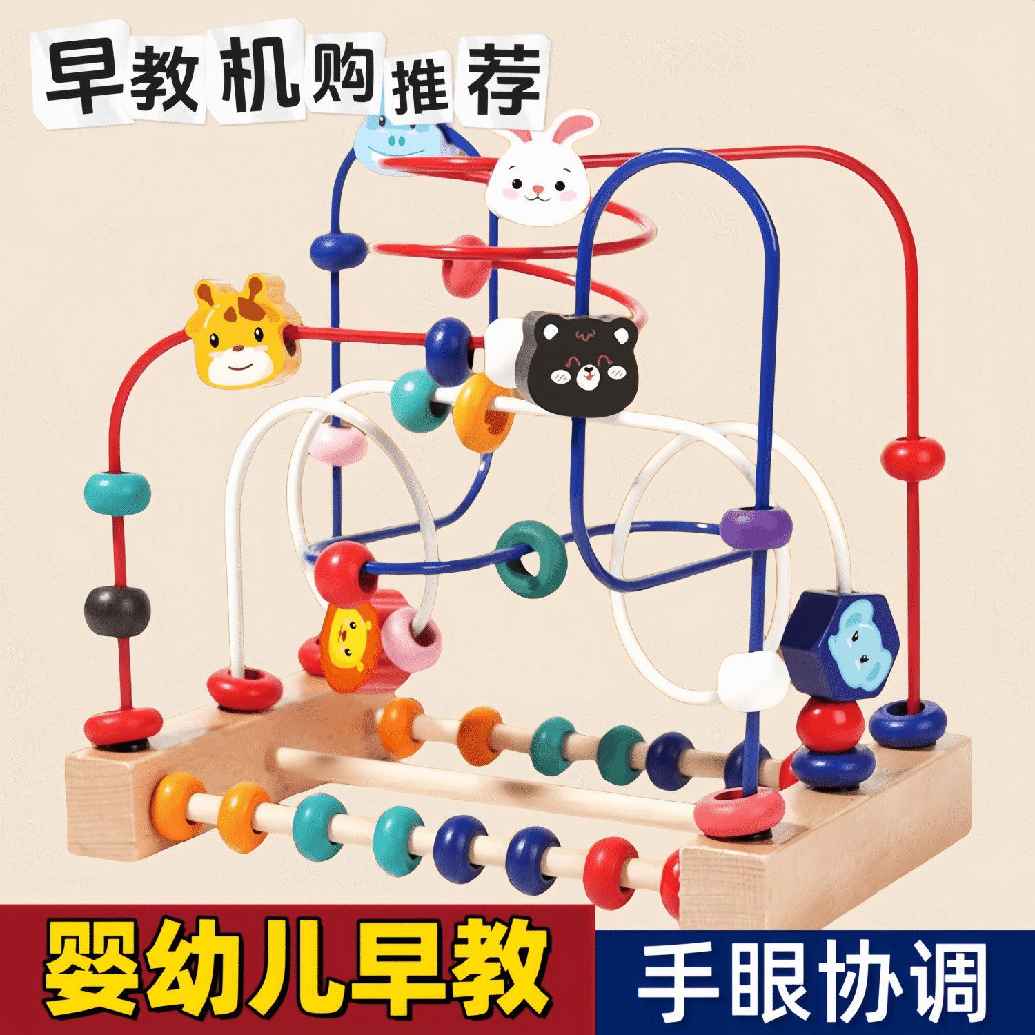多機能動物巻珠乳幼児木製三軌道数珠玩具手眼協調訓練早教益智積み木