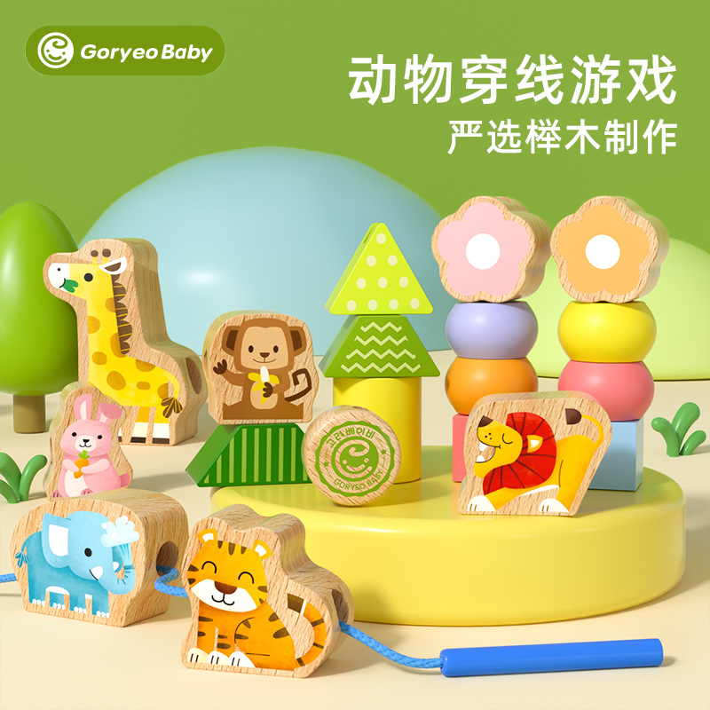 Goryeobabyビーズ子供知育玩具赤ちゃんの細かい動作訓練の集中力はロープを通して積み木を通す