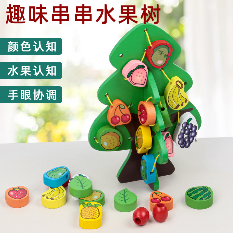 1234歳の子供の蒙氏の男の子の子供の数珠の糸を通して縄の益智の積み木の赤ちゃんは果樹のおもちゃをつなぎます。
