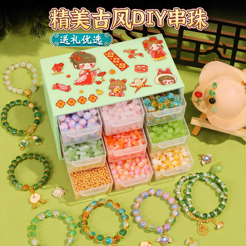 子供の数珠国風手串ブレスレット手作りdiy材料バッグ女の子誕生日プレゼント玩具女の子がビーズを着る