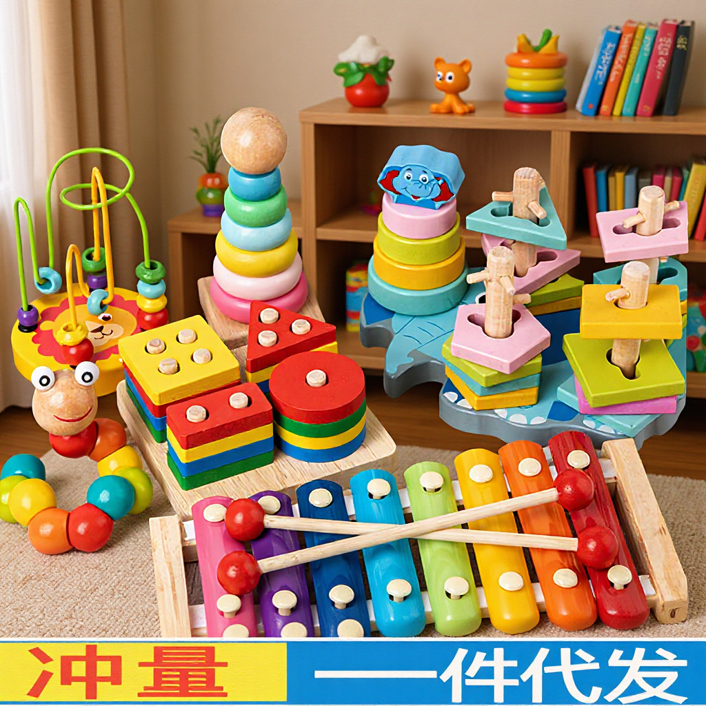 赤ちゃんのおもちゃはビーズの積み木の数珠の子供の6ヶ月以上の7、8、9の赤ちゃんの0、1歳の2蒙氏の早教の益智です。