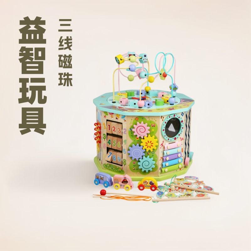 木製十七合一多機能巻珠百宝箱児童知育形状認知把握啓蒙玩具