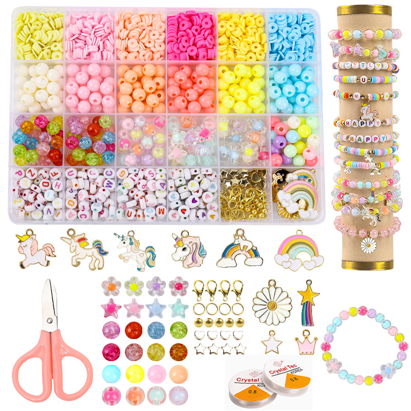 女の子玩具手作りdiyアクセサリー散珠製作益智珠ブレスレットネックレスプレゼントセット子供ビーズ