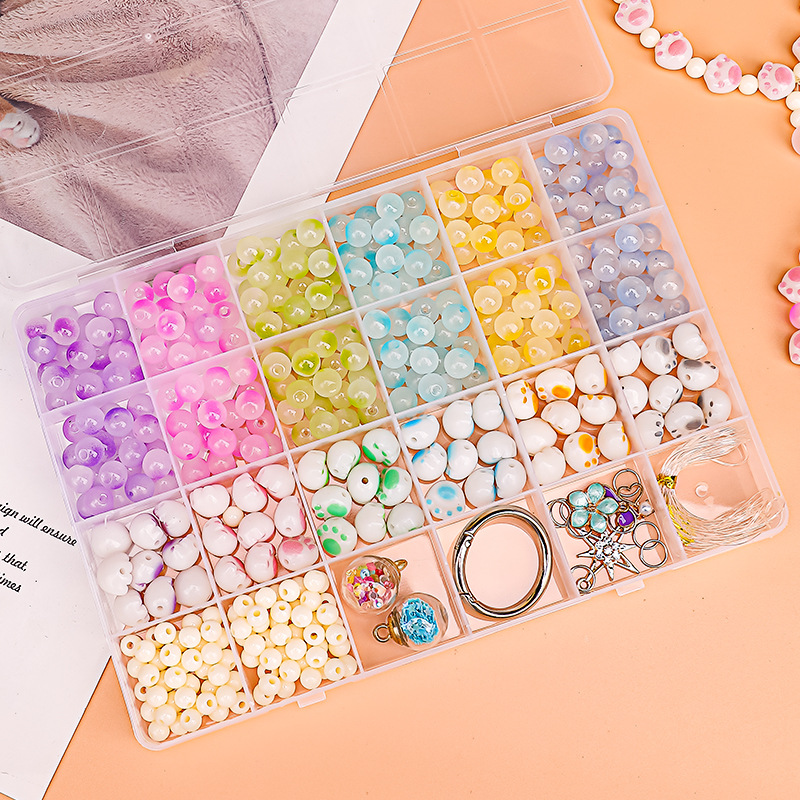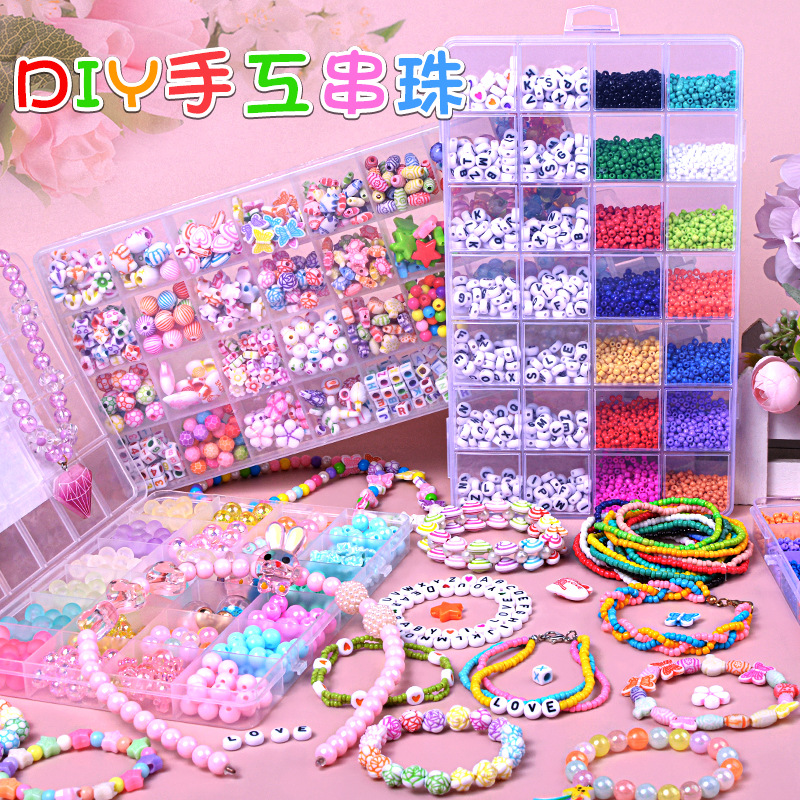 24グリッドセットdiyおもちゃ知育手作り知能開発女の子クリエイティブブレスレットネックレス制作子供ビーズ