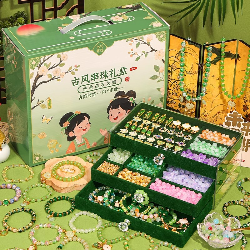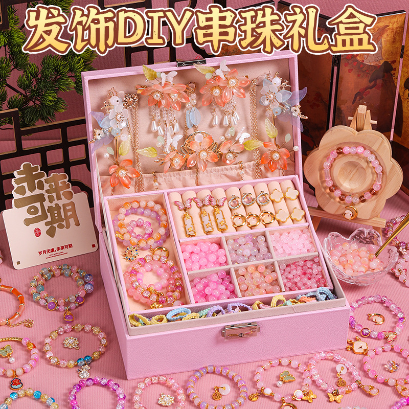 中国風古風子供用ビーズDIYギフトボックス、ガラスビーズ素材、女の子の誕生日プレゼント、ビーズギフトボックス