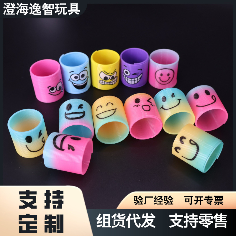 越境益智子供の小さいサイズの笑顔のグラデーション台湾色のスプリングリングのプラスチックの虹の輪の贈り物の小さいおもちゃの卸売り