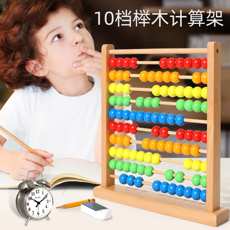 幼児早教木製珠玉棚木製数珠棚小型木製子供計算棚子供珠算玩具棚