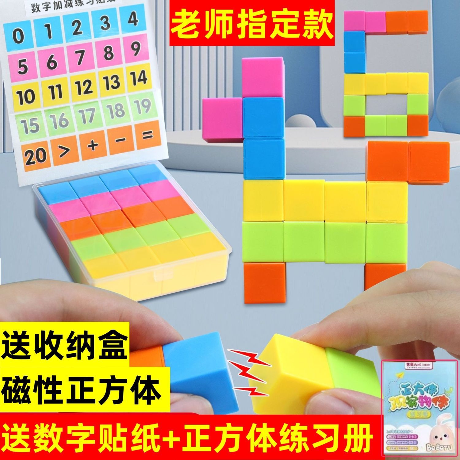 小学生の磁気の正方形の教具の数学の用品の正方形のブロックは立体の幾何学の図形の模型の学具の箱を認識します。