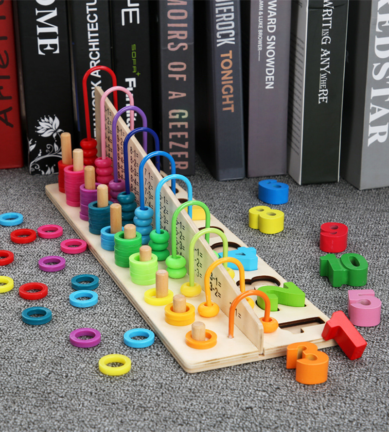 蒙氏早教具木製児童知育玩具縦型10段計算機数学加減算珠1-3-6歳5