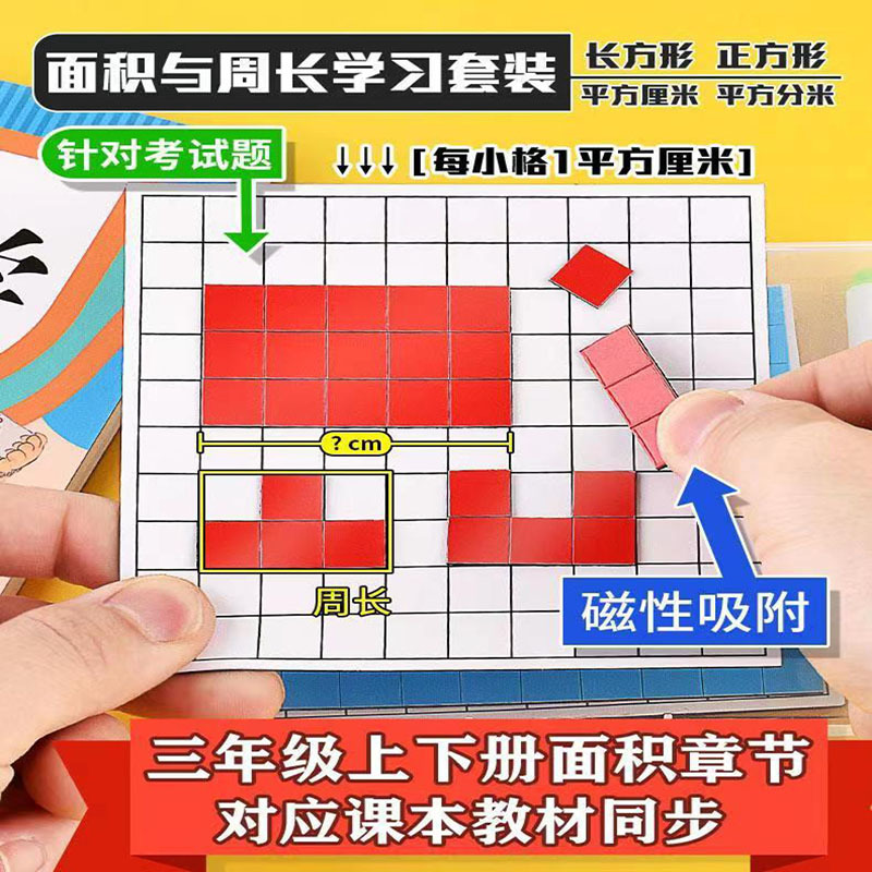 磁気長方形の正方形の面積と周長のデモ器の3年生の数学の教具の小さい四角の辺の長さの測定