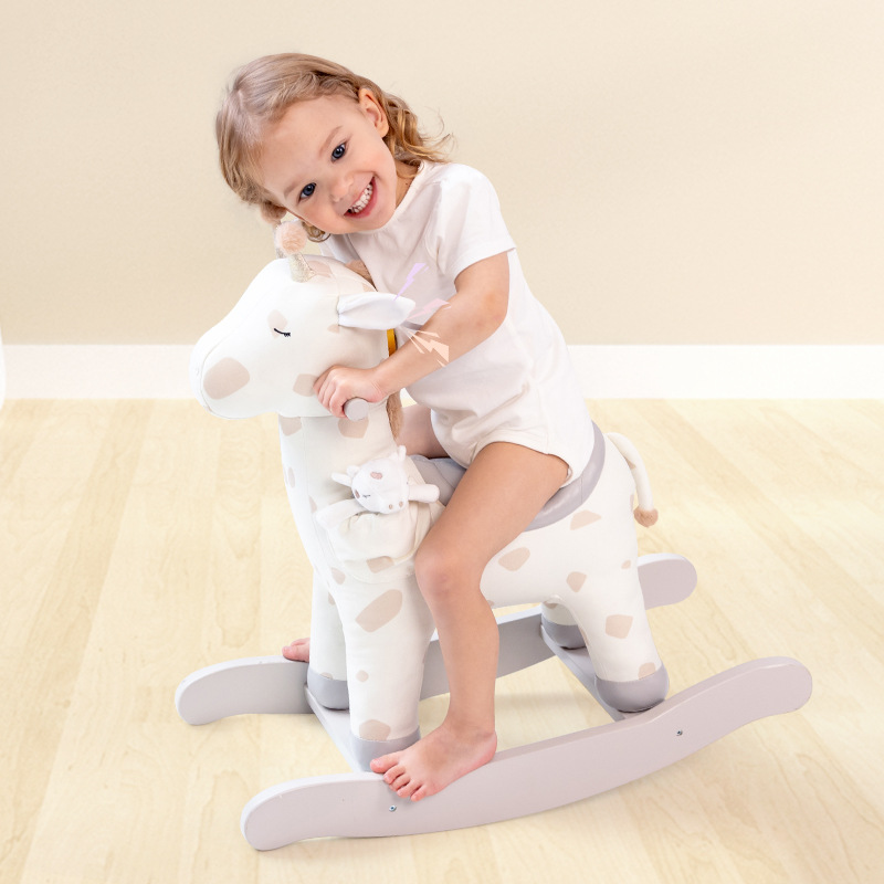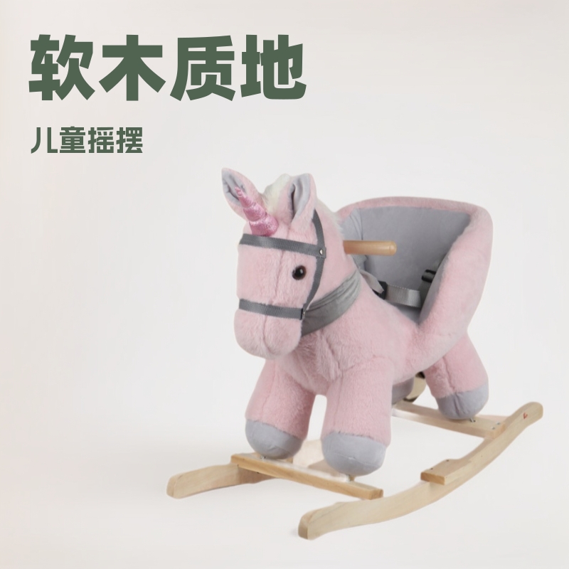 トロイの木馬子供用ロッキングホースぬいぐるみ木製ベース音楽なだめるロッキングチェアクロスボーダーベビーロッキング